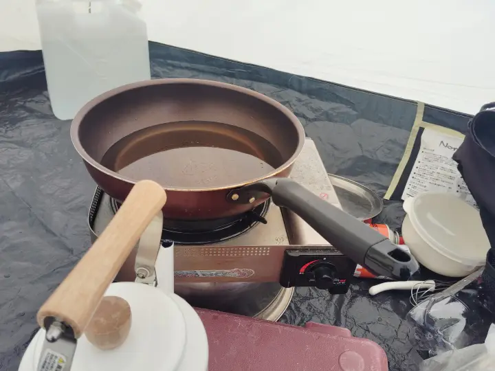 After catching enough fish, we proceeded to deep-fry the fish directly inside the tent. Catch and cook directly on the top of frozen lake is definitely one of winter activity in Hokkaido.